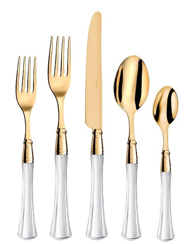 The Venus flatware set captivates with its unique transparency, reflecting light for a subtle, elegant glow on your table. Its flared shape adds a refined so...
