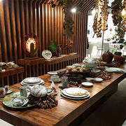 Vista Alegre partnered with Ecoarts Amazônia to create a collection about the Brazilian rainforest, so that the world can see the Amazon through the eyes of those who know it better. The overall collection combines production from three companies: Vista Alegre for porcelain and glass, Bordallo Pinheiro for Faience ceramics, and Casa Alegre for stoneware.