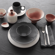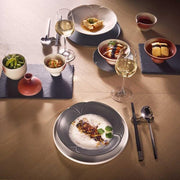 Rosenthal’s Bloom collection puts floral forms in the spotlight. Bowls and dishes evoke the look of open hibiscus blossoms, while plates and cups feature clean, minimalist curves. Inspired by Asian design, the porcelain tableware is available in three striking colors: Lava, Scarlet, and Snow. A uniquely matte, irregular glaze on the Lava and Scarlet pieces gives them the artisanal charm of handcrafted stoneware, making each item one of a kind.