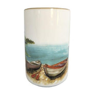 Abbiamo Tutto's Canoe collection brings a lakeside scene featuring canoes to your table and kitchen. Hand painted and decorated in Italy.