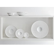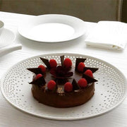 The Cielo Dinnerware Collection is a finely polished porcelain, suitable for microwave and dishwasher use. Perforated and finished by hand, the pattern is designed for accent or for use with other patterns by Stefanie Hering.
