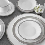 Inspired by the subtle romantic touches that renowned New York designer Vera Wang uses to trim her world-famous bridal gowns, the Grosgrain collection showcases beautifully translucent fine bone china with elegant and graceful design details. Decorated with lustrous platinum border trims reminiscent of delicate needle lace, this collection brings sophistication and sensual elegance to any dining occasion.