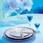 The Heritage: Midas collection by Gianni Cinti for Rosenthal, is a three-dimensional camouflage décor named after the mythological king Midas, whom Dionysus had fulfilled a wish: everything he touched turned to gold. The playful, baroque Rosenthal shape Sanssouci forms the stage for this decor, which is monochromatic in gold. Distinctive twigs and leaves patterns are laid on top of each other in layers, shimmering between matte and glossy surfaces and creating an extremely sensual interplay when they meet the porcelain relief.