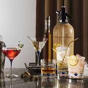 A classic design, the Intermezzo series features a drop of color in a clear stem.