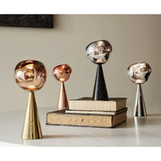 Melt is evocative of molten glass, the interior of a melting glacier or images of deep space. An imperfect, organic and naturalistic light that produces a mesmerizing hot-blown glass effect. Melt is created through a process of blow moulding and vacuum metallisation to achieve melted orbs with abundant and unusual luminosity. Here the orb sits on a cone-shaped base creating a striking silhouette.